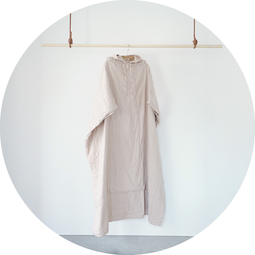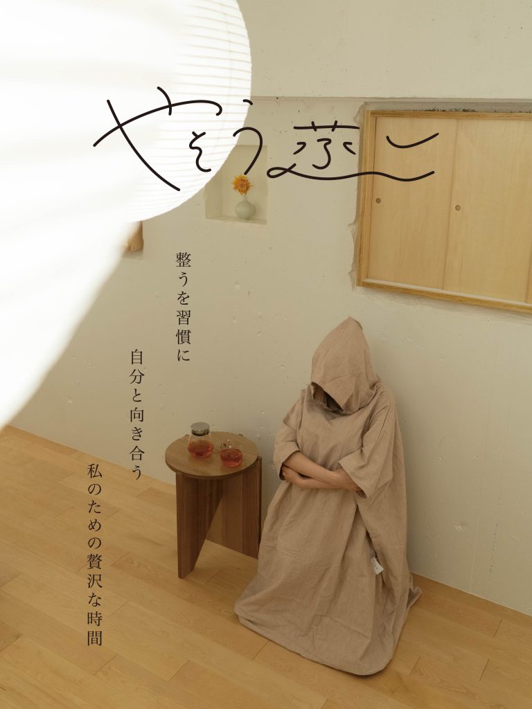 matouのやそう蒸しマントは、ナイロンやポリエステルの化学繊維を使わず、肌に優しいオーガニックコットンを採用し、植物で染色したオリジナルやそう蒸しマントです。肌あたりが優しい生地で、野草の蒸気が体を包み込みます。汗をかいてもベタつかず、体を温めてくれます。